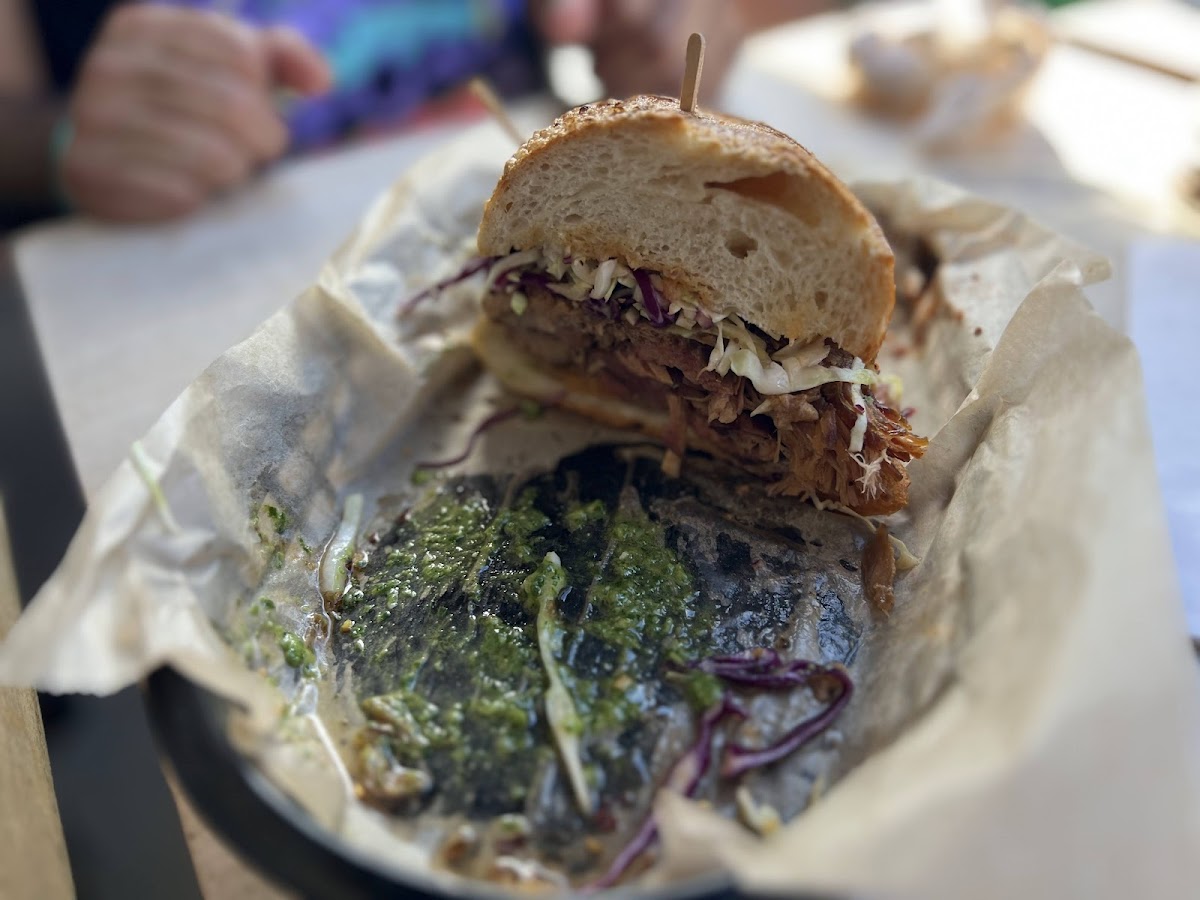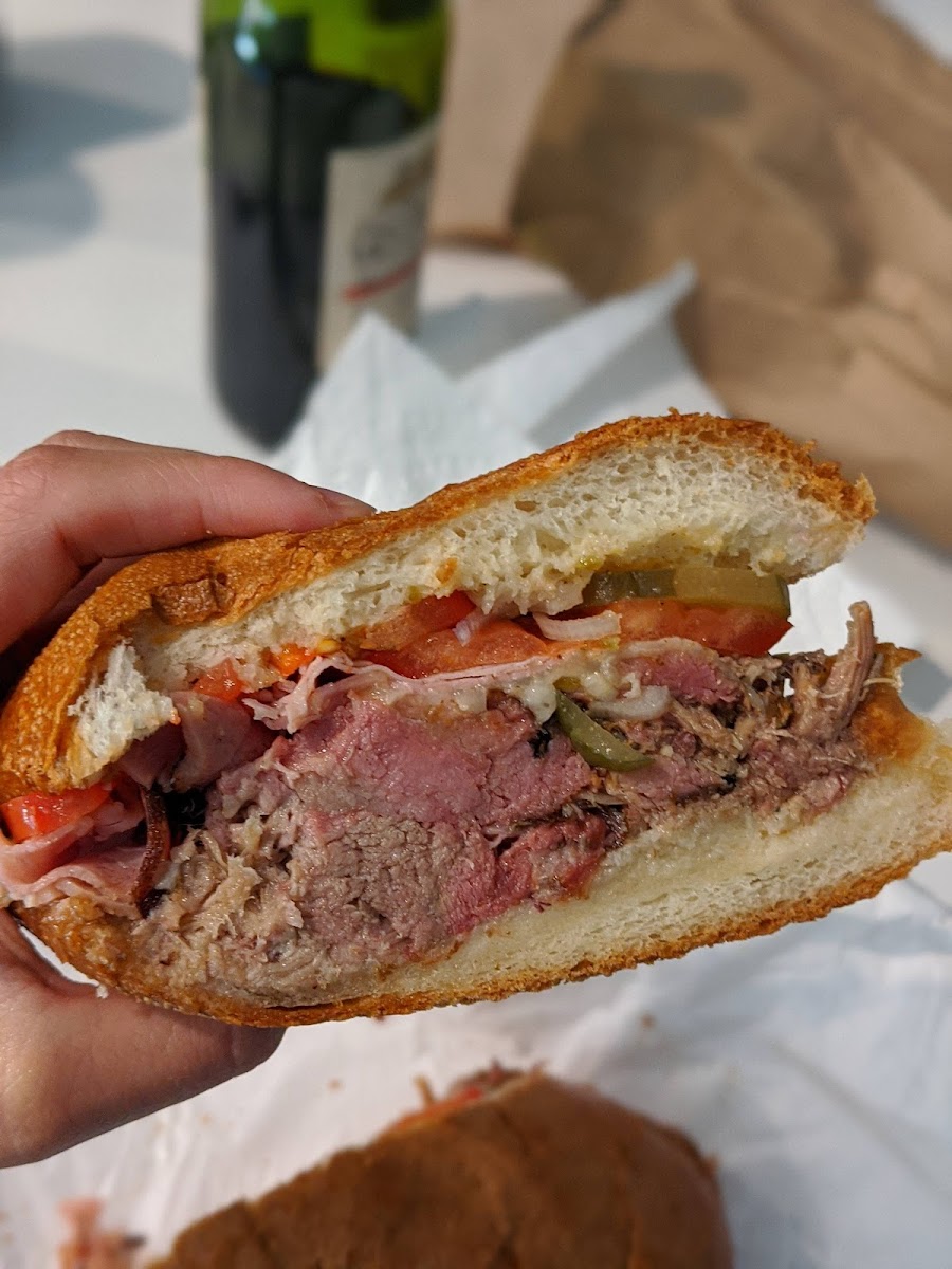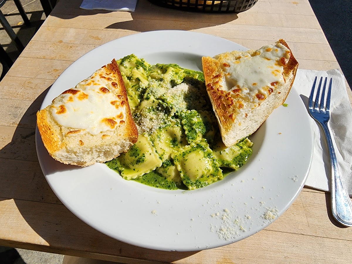 The menu leans on hearty Italian classics like traditional meat or chicken ravioli smothered in pesto or marinara sauces, often accompanied by cheesy bread that’s big enough to share or save for later. There’s a deli-style angle with sandwiches that have drawn positive attention — notably the pulled pork and mojo sandwiches that stack smoked pork and flavorful toppings on fresh sourdough. The sourdough itself is a notable detail, toasted just right but not overly tangy, providing a solid base without overpowering the fillings.